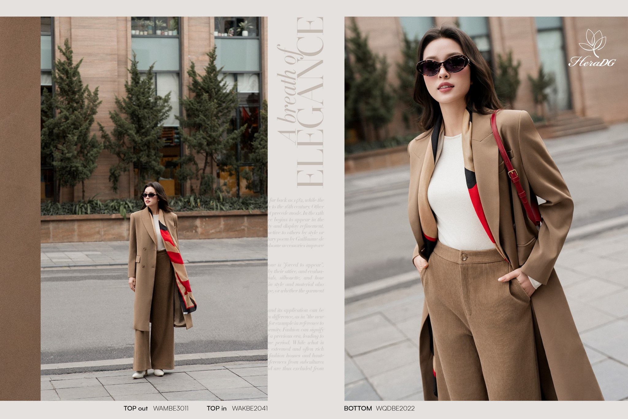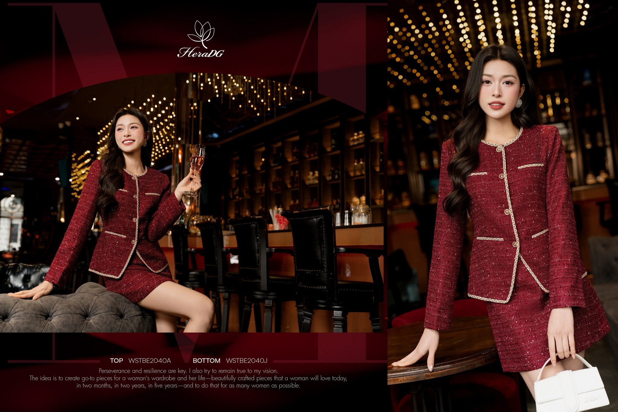 Bảng màu sắc được HeraDG lựa chọn như một lời gợi nhắc tinh tế về không khí Tết đang đến gần: sắc đỏ ấm áp mang hơi thở lễ hội, sắc trắng thanh khiết của mùa mới khởi đầu, và sắc nâu trầm ấm gợi cảm giác an yên, sang trọng. Tất cả hòa quyện để tạo nên những thiết kế dễ mặc trong ngày đông, nhưng vẫn đủ nổi bật để đồng hành cùng người phụ nữ trong những khoảnh khắc đặc biệt của mùa lễ hội.