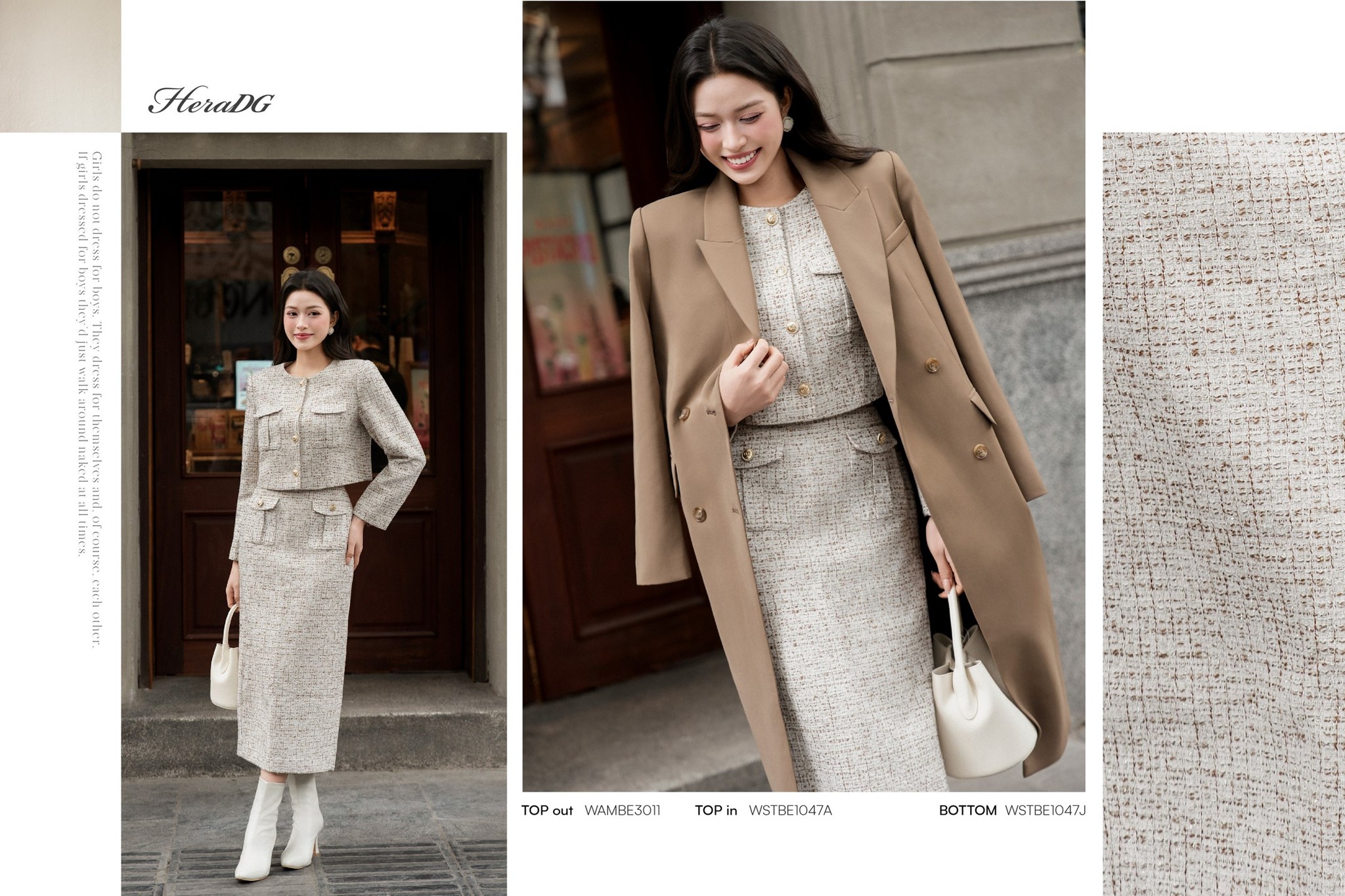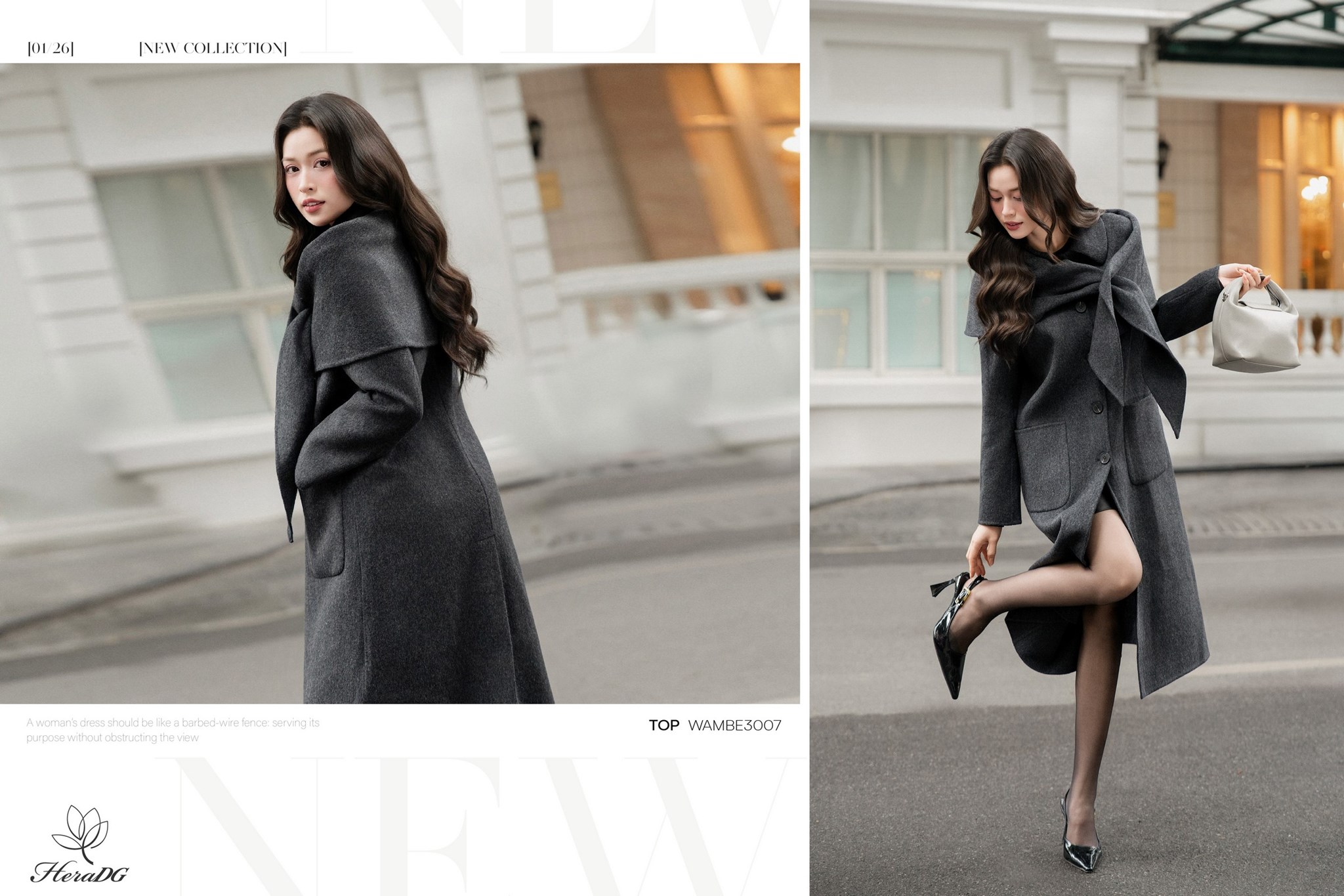 Mùa đông trong thế giới của HeraDG không chỉ là cái lạnh, mà là sự giao thoa giữa ấm áp và dịu dàng, giữa phom dáng chỉn chu và cảm xúc lãng mạn ẩn sau từng đường nét. Bộ sưu tập được khởi nguồn từ những chất liệu sinh ra để dành cho mùa lạnh được lựa chọn kỹ lưỡng, xử lý tinh tế để mang lại cảm giác mềm mại, đứng dáng và giữ ấm trọn vẹn, nhưng vẫn giữ được nét nữ tính nhẹ nhàng.