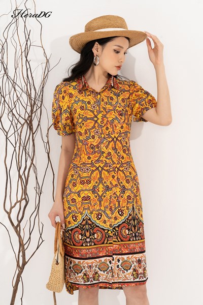 Đầm sơ mi tay bồng